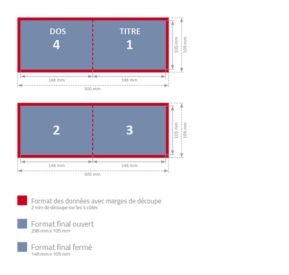 Veuillez enregistrer le recto et le verso séparément dans deux fichiers, sans bord blanc, ni trait de coupe, ni hirondelle. Tous les textes et les polices de caractères doivent être impérativement vectorisés.