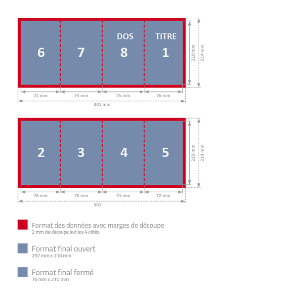 Veuillez enregistrer le recto et le verso séparément dans deux fichiers, sans bord blanc, ni trait de coupe, ni hirondelle. Tous les textes et les polices de caractères doivent être impérativement vectorisés.